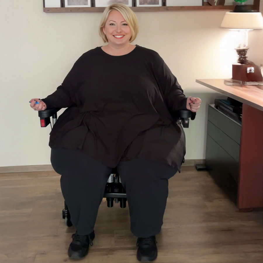 Dieser Stuhl wird oft als Schwerlast-Therapiestuhl für mehr als 250 Kg Nutzergewicht für zu Hause oder als Bürostuhl für Menschen mit Adipositas oder Lipödem gewählt.